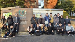 九工大は科学技術振興機構公募事業『さくらサイエンスプログラム』に採択され(担当: 大学院情報工学研究院物理情報工学研究系 福間 康裕教授)、2025年12月16日~12月25日の10日間、飯塚キャンパスにおいて、アミティ大学ノイダ校(インド)から教員1名、大学院生2名、大学生1名、インド工科大学カンプール校(インド)から教員1名と大学院生2名、デリー大学(インド)から大学院生2名、国立台湾科技大学(台湾)から大学院生3名、計12名を受け入れました。 「脳型情報ハードウェア技術に関する研究」というテーマで、クリーンルームでの素子作製・評価の実習を行いました。また、山口大学との研究交流、広島にて平和学習および観光を行い、本国際交流を通じて、お互いの研究環境や文化の違いを理解するよい機会となりました。